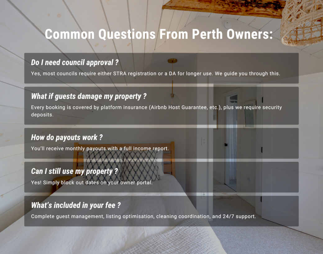 WA Perth Short Stay was founded with one mission: to make short-term rental ownership simple, compliant, and profitable for Perth property owners. We’re not just a management company — we’re a local partner that understands council regulations, guest expectations, and the Perth property market.